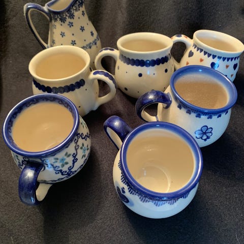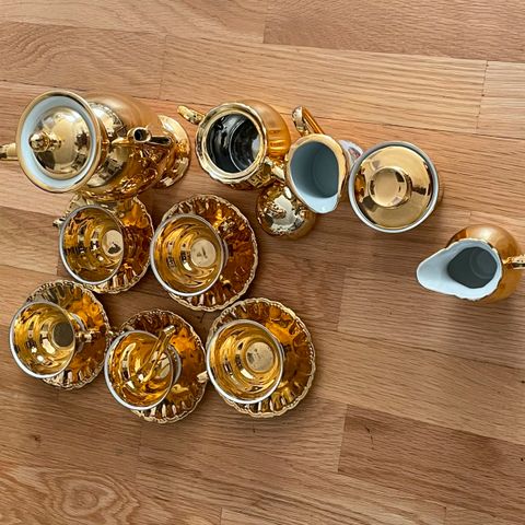 3 kaffesæt med guldkant.