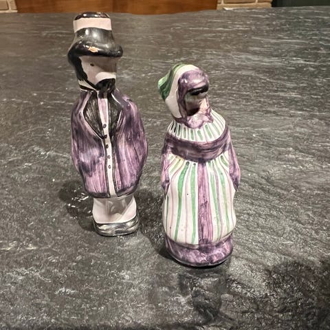 Syv sjove og farverige fabeldyr fra Sydafrika. De er lavet i en form for keramik.