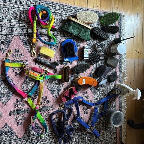 Rideudstyrspakke sælges samlet. Blandet stand, men alt brugbartg. Trænger til en vask/kærlig hånd.
