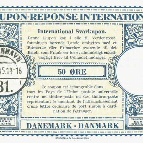 5 sen International Svarkupon, stemplet i Japan 19.8.1929. I fin stand, som ny.