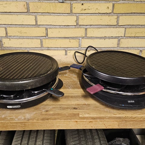 Melissa Raclette med 8 små stegepander under den store på toppen pæn og i orden