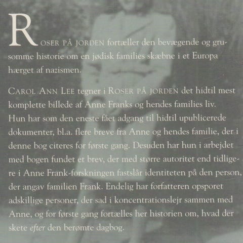 Roser på jorden biografi om Anne Frank, Carol Ann Lee, genre: biografi