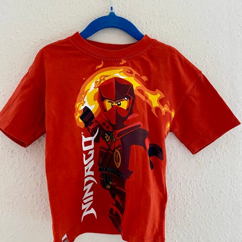 Blå ninjago Lego t-shirt med guld tryk. I den pæne ende af brugt men god.