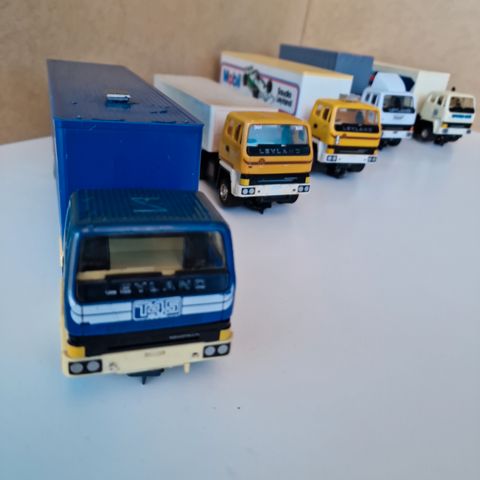 Scalextric vintage leyland truck fra først I 80'erne. Blev produceret som Roadtrain med forskellige trailer samt solgt som et banesæt med 2 trucks med normal racergearing, dem der er solgt som Roadtrain er med lav gearing prisen er pr. Stk. 400,kr. De alle analog, kan laves om til digitalt spor