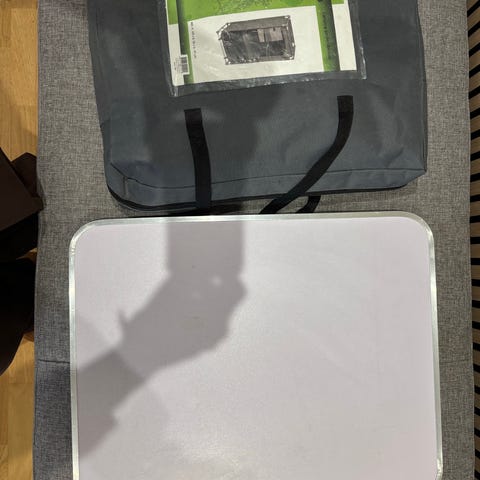 Rummelig bord/reol til fortelt med 2 hylder, og to plader i bunden. Mål: Højde 90. Brede 50 og længde 105.