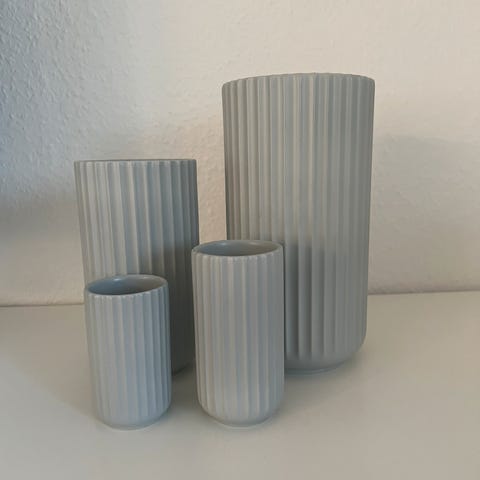 3 som nye Lyngby Porcelæn vaser i hvid porcelæn, måler 12,5 cm, 15,5 cm og 20,5 cm.