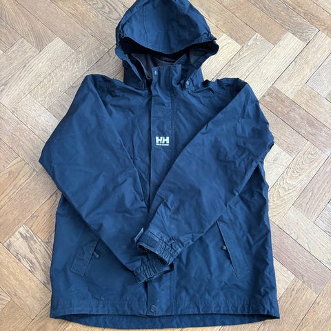 Helly Hansen børneregntøj størrelse 104/4 jakke med aftagelig hætte og bukser (shelter pant). Bukser har elastiks-talje, ligesom buksernes underkant. Ekstra forstærkning på knæ. Helly Tech performance. Vandtæt (Vandsøjletryk: mindst 10.000 mm). Pasform er ifølge HH af typen Regular Fit. Farve: Navy med refleks-detaljer (unisex). Nypris over 1.000,- sælges kun samlet. Kan evt. hentes i Egå.