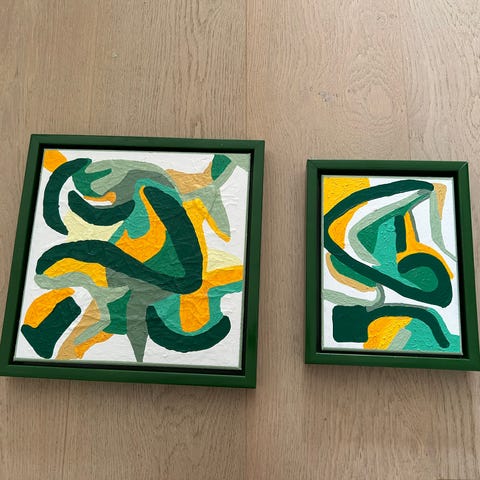 Væg malerier i grøn, sand og guld