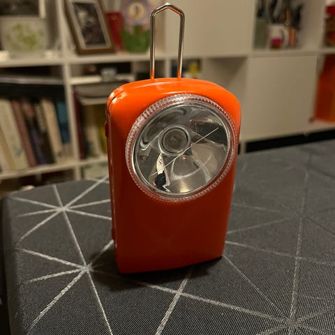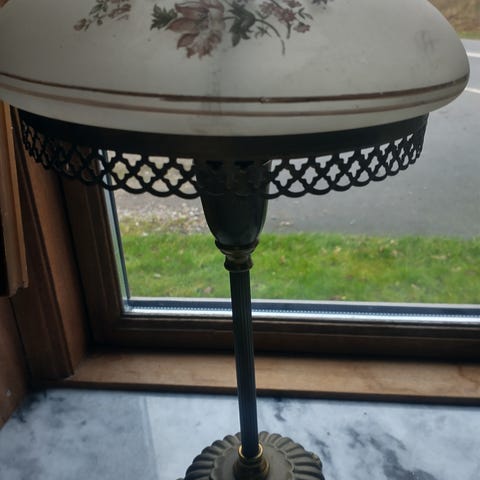 Antik lampe med tryk knap. Skal sættes på bordet eller et andet møbel.