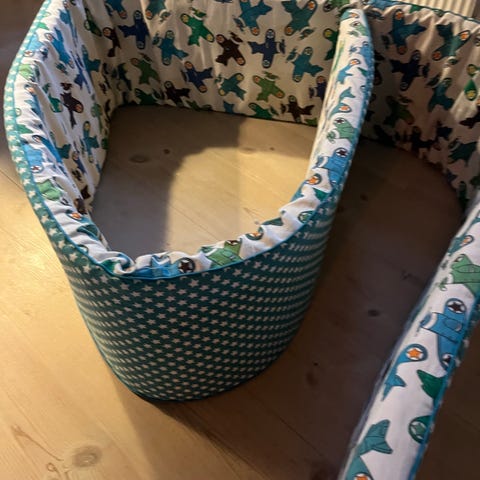 Rigtig fin sengerand med søde dyr. Pæn og uden pletter på indersiden, men lidt solbleget og med enkelte pletter på ydersiden (se billeder).