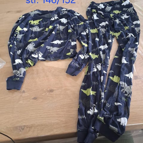 Nattøj med lange bukser med bindebånd samt langærmet trøje.