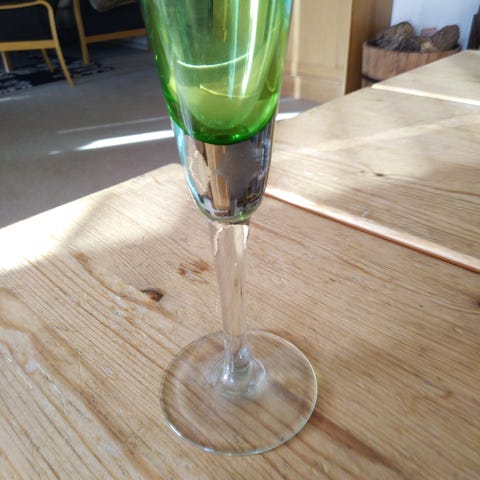 Fin dekorativ gammel glas flaske - super stor og smuk i grønligt glas