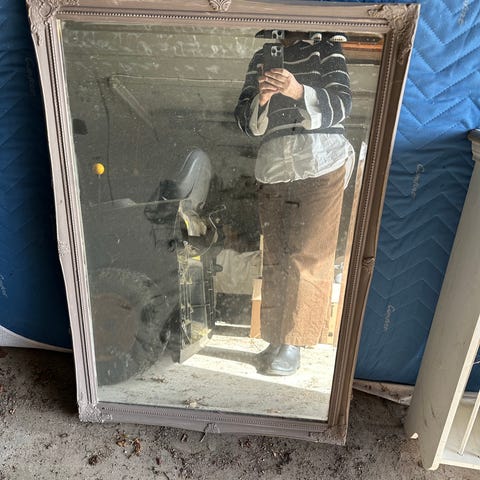 spejl med facet slebet glas . hjørner på rammen er lidt slidte. og bag side buger lidt. glas sidder godt fast