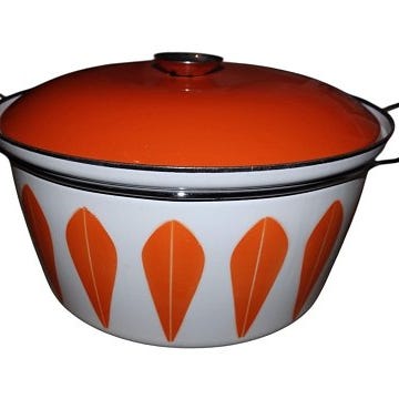 Rigtig fin retro Cathrineholm Lotus gryde med låg i farven olivengrøn, god stand ingen ridser. Måler 20 cm i dia.