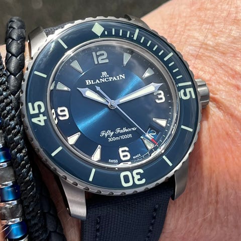 Andet, Blancpain, Blancpain fifty Fathoms Natorem med rustfrit stål hardware. Sort. I fin stand