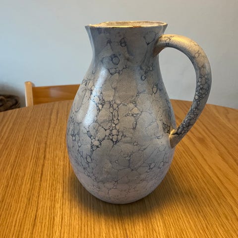 Stor og fin keramik kande, der står uden skår og afslag, da den kun har stået til pynt.