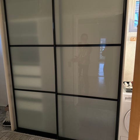 Glas fra skydedør.