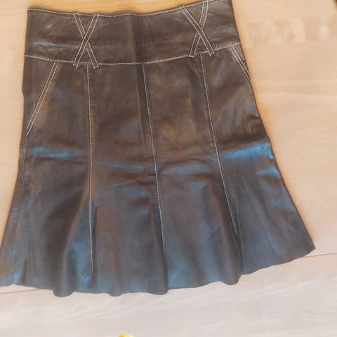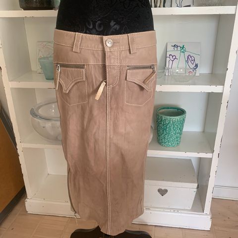 Meget blød og lækker fra On Stage. Grå med hvide syninger og lilla foer. Aldrig brugt. Talje 84 cm & 60 cm lang i A snit.