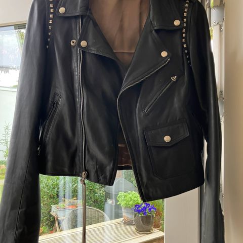 Jakke, str. 40, Moliin, God men brugt, Flot skindjakke fra Molin Copenhagen m. lynlåslommer. Str. L. Udvendigt: lammeskind. Indvendigt: polyester. Vejer ca. 1368 g. Solid, tung og god kvalitet. Lidt småfnug nogle steder (se billeder), men generelt pæn.