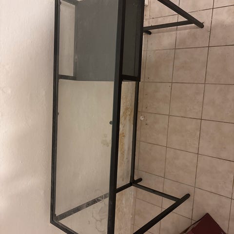 Skrivebord med glasplade med print. Ingen skår. De 2 bukke medfølger. Mål 150 x 80. Samlet pris 200 kr
