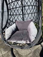Lækker hængestol. Købt i XL-byg forrige sommer. Fejler intet, men bærer præg af at den har stået ude hele året. Kurven er intakt og hynden er bleget af solen på begge sider.
