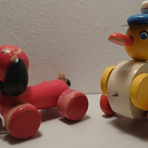 8stk Håndskårne dyr i træ 1 stk pige vintage legetøj