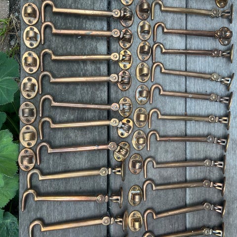 Messing, Helt nye og skal sælges billigt og hurtigt kahytskrog messing kahytskrog dørkrog messing Krog stormkrog mange stk haves helt nye vindueskrog