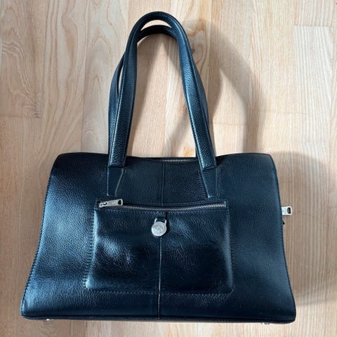 Super flot, elegant og klassisk sort håndtaske fra Adax i Cormorano skind. Fremstår som ny og har kun været i brug to gange. Tasken har to bærehanke. Lukkes med lynlås i toppen og har tre indvendige store rum, adskilt af to lynlås rum plus lille lynlåsrum og udvendig lynlåslomme.