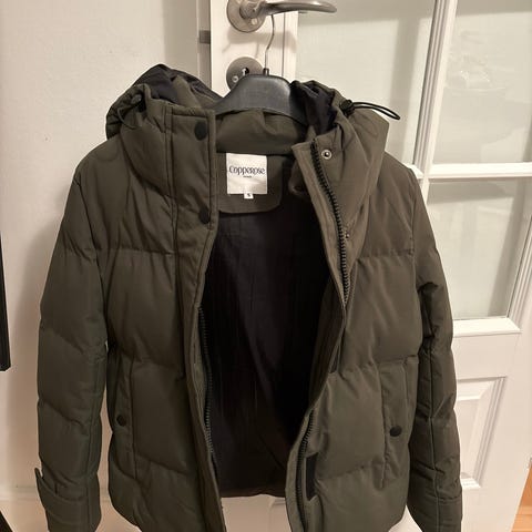 Jakken har lynlås og knaplukning for ekstra beskyttelse mod kulden.