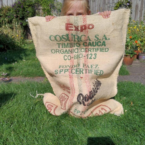 Kaffesække, Poserne kan indeholde 60-69 kg. Og måler ca. 60x100 cm.