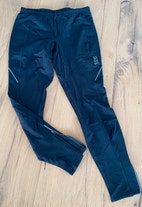 Lange løbetights, sorte, lynlås i ben, lille lomme bagpå.