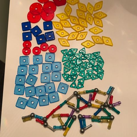 Kuffert med stort set ubrugt Geomag af varierende slags.