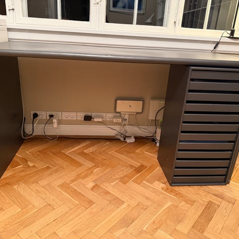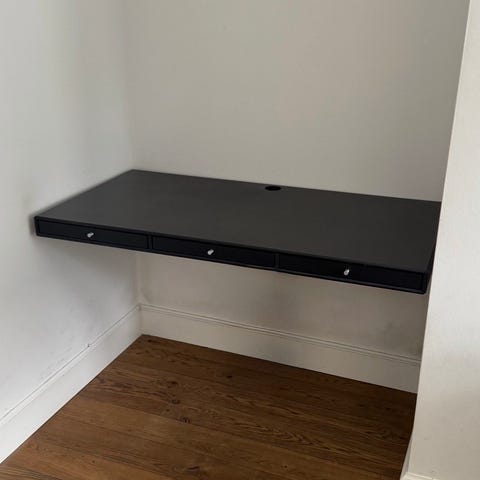 Montana skrivebord + lille plade fx til printer, begge med ophængsskinne