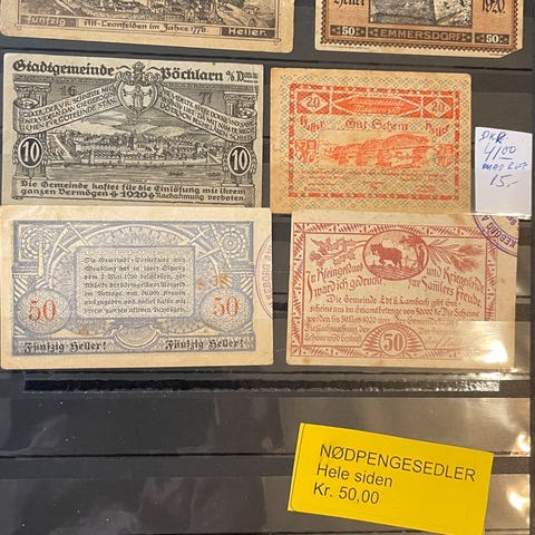 20 pf. sedlen har været foldet og ses at være ægte brugt. 25 pf. sedlen er ufoldet.
