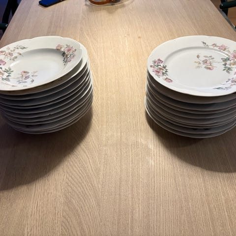 Spise-, dybe- eller frokost tallerkner har interesse.