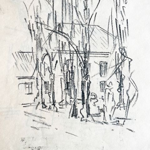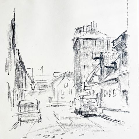 Gade i indre København, Original kultegning 1960erne af Otto C., 30x23 cm