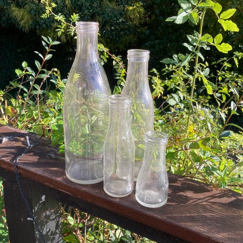 GAMLE FLØDE/MÆLKE FLASKER I GLAS.