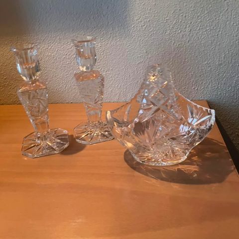 Nr. 2. Fint krystalglas H 21,5 cm. Desværre med er lille nøk på fod. - 50 kr.
