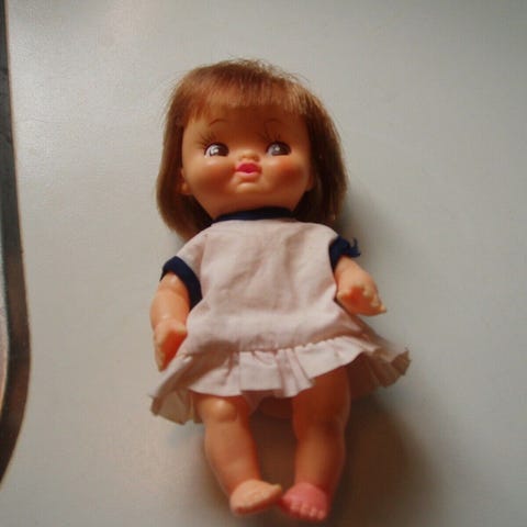 Andet, lille 12 cm dukke fra 70erne, lille 12 cm høj dukke mærket japan i nakken rødhåret i fin stand med oprindelig kjole og trusser . bevægelige arme og faste ben . sød finurligt smil. sendes for købers regning eller hentes her