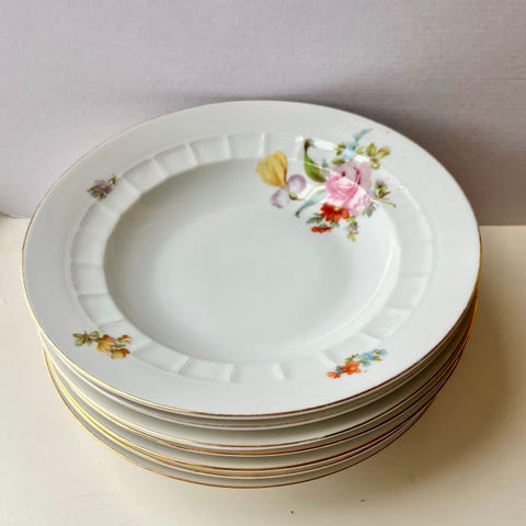 4 vintage tallerkener, dybe med blomster og grøn kant. Carl Tielsch, Altwasser. De er alle i fin vintage stand. Uden skår, revner eller misfarvninger. Bemærk: En enkelt tallerken har et lille nag på bagsiden af kanten. Se de sidste 2 fotos.