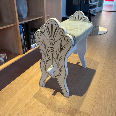 Gammel klaverbænk, som jeg fik med sammen med mit klaver.