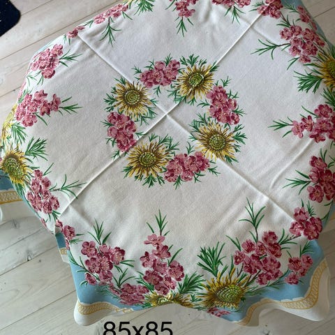 Denne skønne vintage dug til kolonihaven sommerhuset eller køkkenet er også et lækkert stykke stof til andet brug se også mine andre annoncer perfekt stand ingen lugt eller pletter jeg kan godt sende