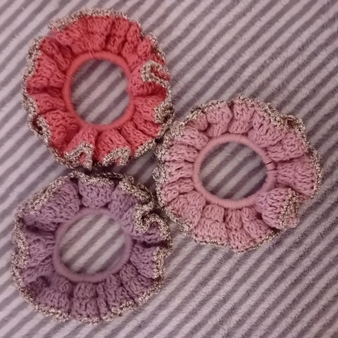 Helt ny, hjemmehæklet scrunchie/hårelastik hæklet i det blødeste bløde chenille-garn (100% polyester)