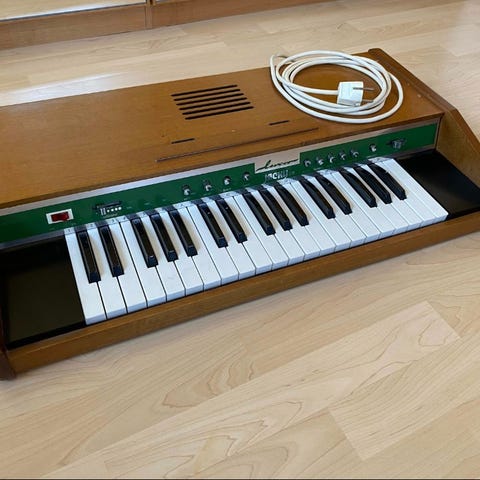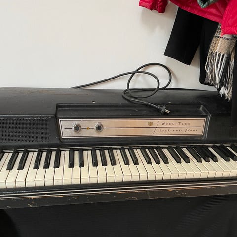 Gammel lækkerhed fra Hillwood. Electronic Piano. Mener et par keys skal renses, men ellers vidst nok i ok stand. Mega lækkert låg med beslag, det er bare smart. :-) Indbyggede speakers.