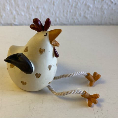 Ca 13 cm. Havde plads til påskeæg til påske som påskepynt eller til karse purløg eller anden krydderurt til at have stående fremme på køkkenbord. Gul pastelgul kylling