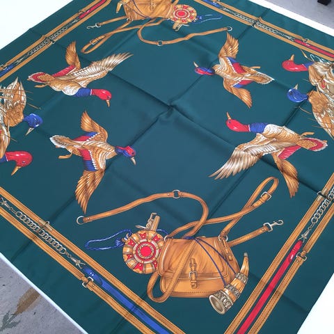 Stort sort tørklæde med ænder og jagttaske str. 87x87cm. 3 for 2. Made in Italy, microfiber. Har ikke været brugt.