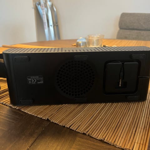 Højttaleren er lavet af beton og naturlige fibre, og stoffet på toppen er lavet af genbrugte plastikflasker. Den har derfor et naturligt og miljøvenligt ydre.