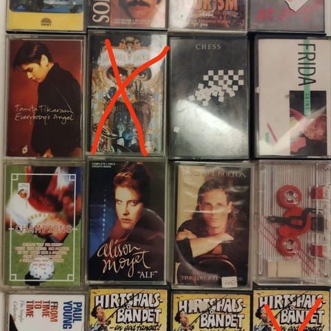 En kasse med brugte DAT bånd
