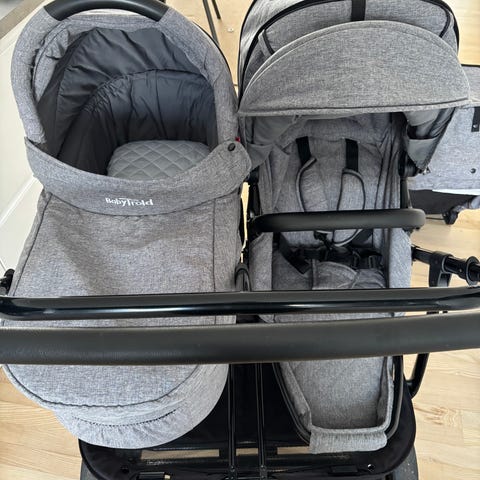 er en praktisk og let søskende- eller tvillingevogn, med plads til to børn. Kalecher og ryglæn kan justeres hver for sig, så det ene barn kan sove mens det andet sidder. Med vognen får du et regnslag og to vendbare, grå og sorte hynder.