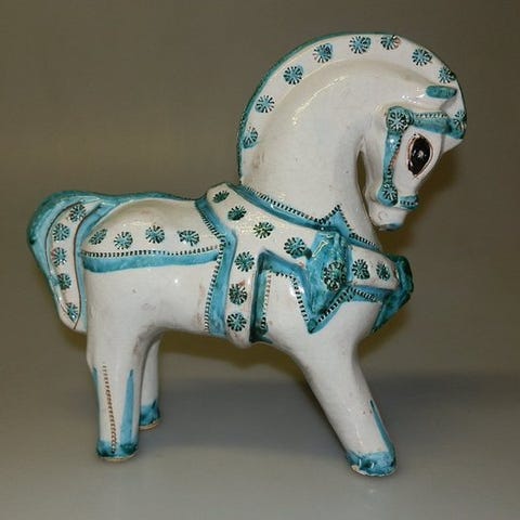 Vintage hest i brunlige nuancer med huller i keramikken (se foto)